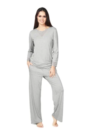 Camiset Whispers LIngerie de 2 piezas: camiseta y short en tejido de punto en viscosa de la más alta calidad, con encaje en contraste en camiseta.